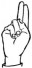 На ћирилици написано АЛЕКСАНДАР БИЗЕТИЋ састоји се из 17 слова [?]. Исписано ћириличном једноручном азбуком за глувонеме: